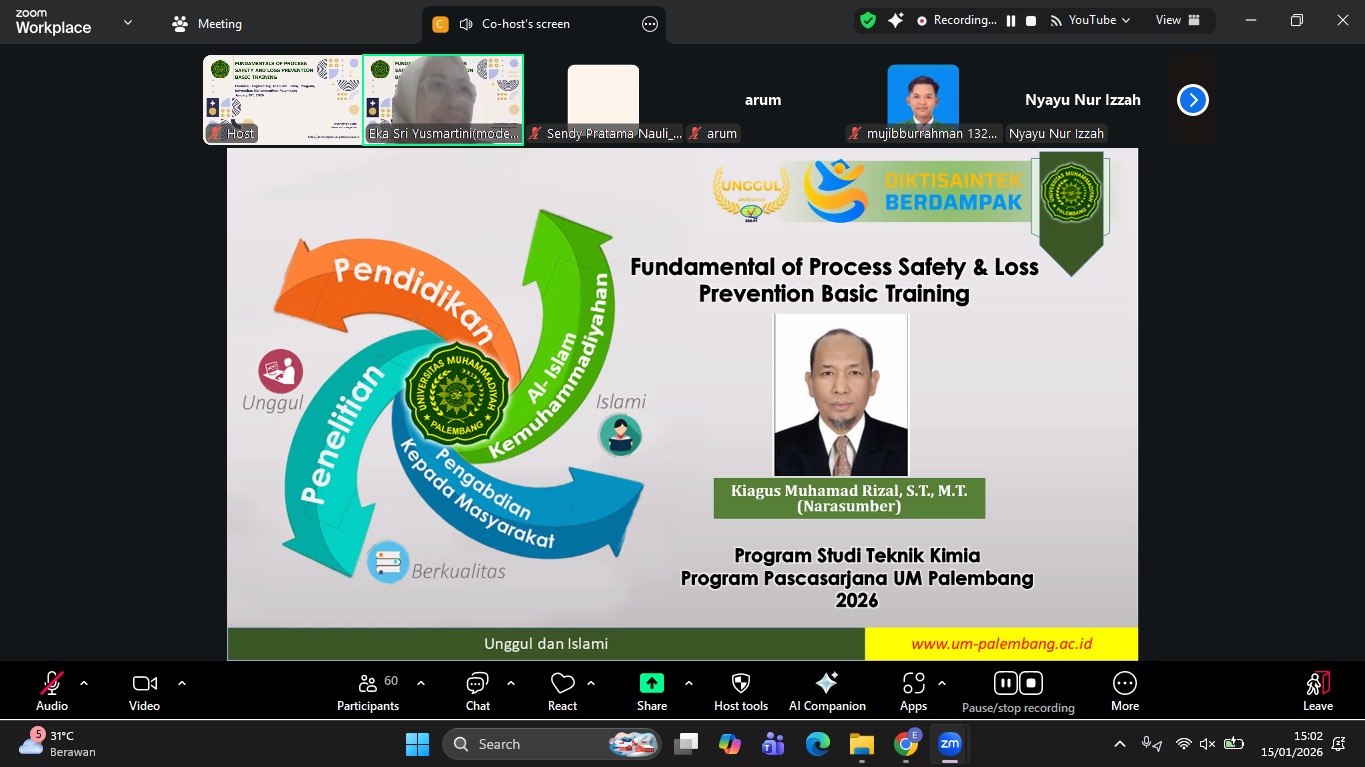 Perkuat Budaya K3, Pascasarjana Teknik Kimia UM Palembang Gelar Fundamental of Process Safety and Loss Prevention Basic Training
