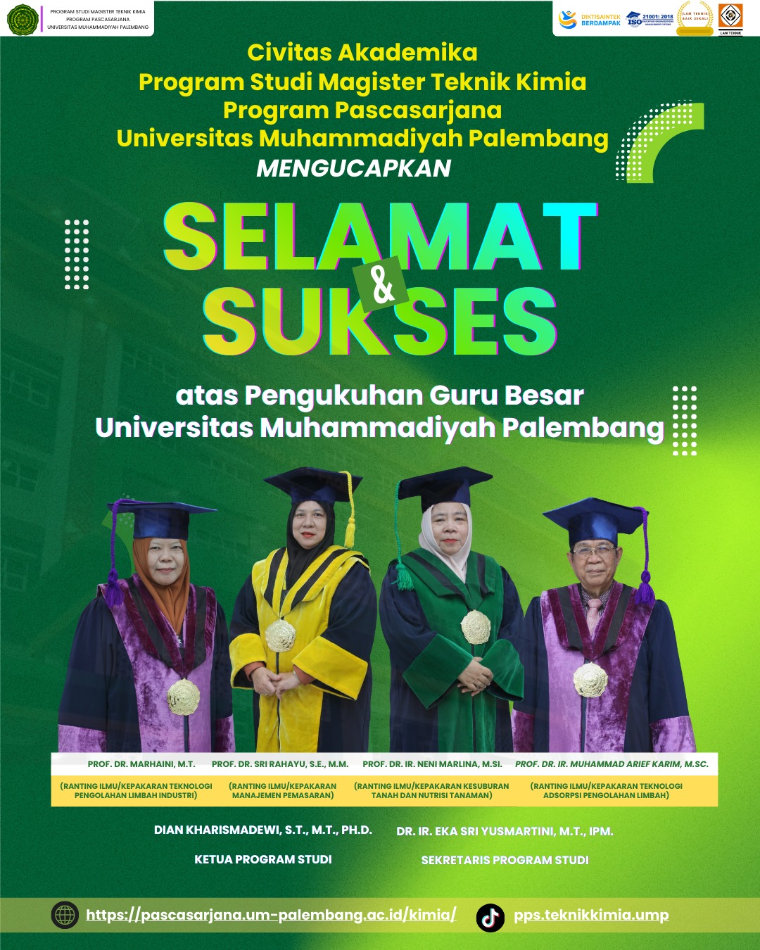 Palembang, 16 Februari 2026 – Program Studi Magister Teknik Kimia, Program Pascasarjana Universitas Muhammadiyah Palembang, kembali menunjukkan komitmennya dalam menjalankan tridharma perguruan tinggi melalui kegiatan Pengabdian kepada Masyarakat yang dilakukan oleh dosen dan mahasiswa melalui Read more…