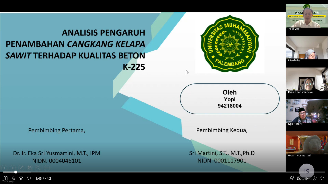 Ujian Seminar Proposal Mahasiswa Magister Teknik Kimia : Yopi “Teliti Analisis Pengaruh Penambahan Cangkang Kelapa Sawit Terhadap Kualitas Beton K-225”