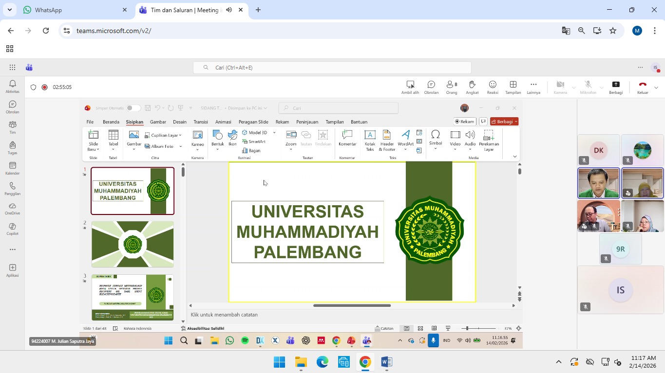 Palembang, 14 Februari 2026 — Ujian seminar proposal ini dilaksanakan pada hari Sabtu, 14 Februari 2026, pukul 08.30 – 09.30 WIB, dengan menghadirkan suasana diskusi ilmiah yang konstruktif antara mahasiswa dengan para dosen pembimbing serta Read more…