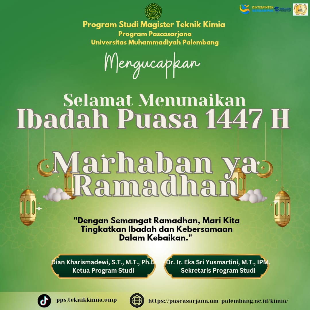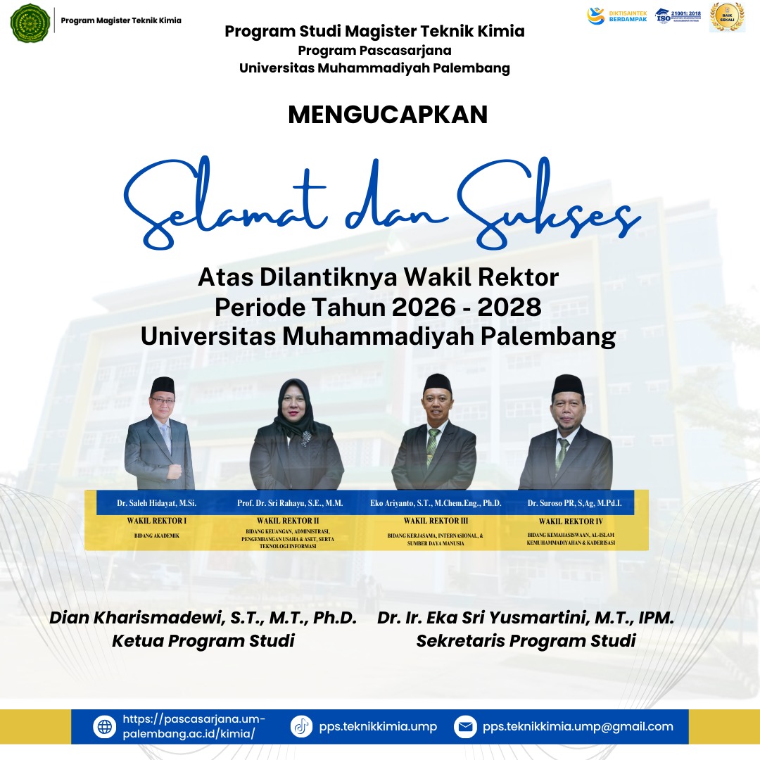 Palembang, 14 Februari 2026 — Program Studi Magister Teknik Kimia pada Universitas Muhammadiyah Palembang kembali menyelenggarakan Ujian Seminar Hasil Tesis sebagai bagian dari proses akademik mahasiswa dalam menyelesaikan studi magister. Kegiatan tersebut dilaksanakan secara daring Read more…