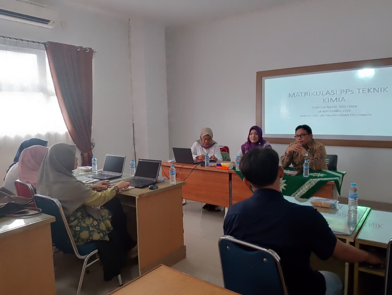 Palembang, 20 September 2025 – Program Pascasarjana Universitas Muhammadiyah Palembang kembali menyelenggarakan kegiatan Matrikulasi Program Studi Magister Teknik Kimia pada hari Sabtu, 20 September 2025, bertempat di Gedung Faqih Usman Lantai 5 . Kegiatan ini diikuti oleh mahasiswa baru Angkatan XI yang siap menempuh perjalanan akademik di jenjang magister.