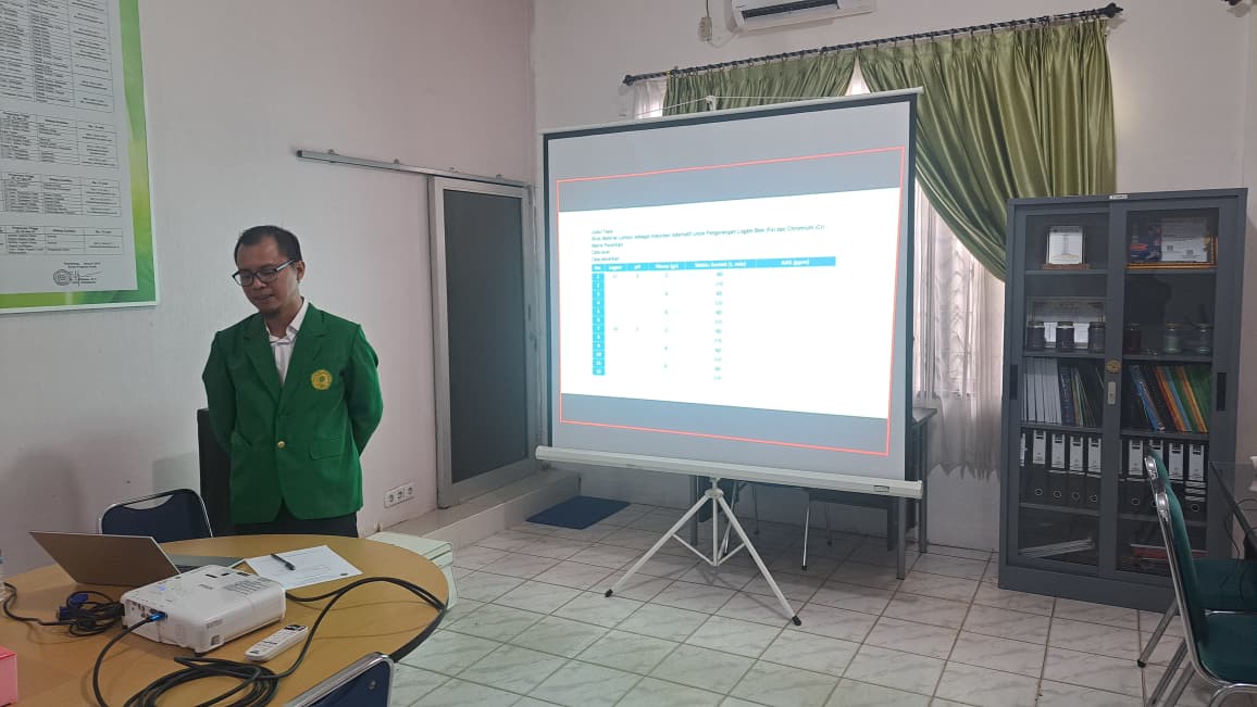 Mahasiswa yang mengikuti ujian proposal tesis tersebut adalah Irfan Adrian (NIM. 94224002) dengan judul proposal tesis “Material Lumpur sebagai Adsorben Alternatif untuk Pengurangan Logam Besi (Fe) dan Chromium (Cr)”. Proposal ini mengangkat topik strategis di bidang teknik kimia dan lingkungan, khususnya terkait pemanfaatan material alternatif sebagai solusi pengurangan logam berat yang berpotensi mencemari lingkungan.
