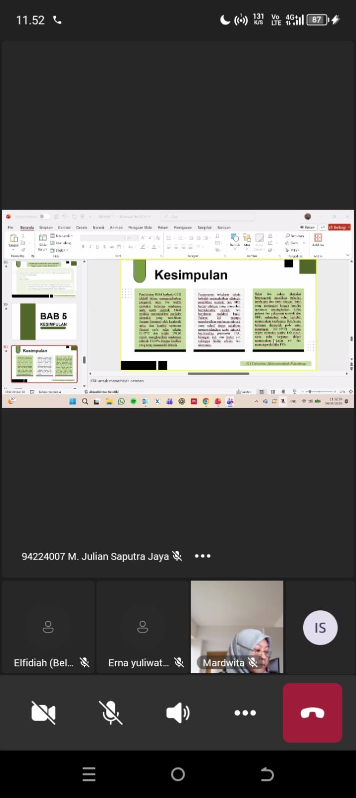 Melalui kegiatan ini, Program Pascasarjana Universitas Muhammadiyah Palembang terus berkomitmen untuk mendorong lahirnya penelitian yang inovatif, aplikatif, dan relevan dengan kebutuhan industri, khususnya dalam bidang optimasi proses dan pengolahan limbah industri. Diharapkan hasil penelitian yang dilakukan dapat memberikan manfaat bagi pengembangan ilmu pengetahuan serta menjadi referensi bagi pengembangan teknologi yang lebih efisien dan ramah lingkungan di masa mendatang.