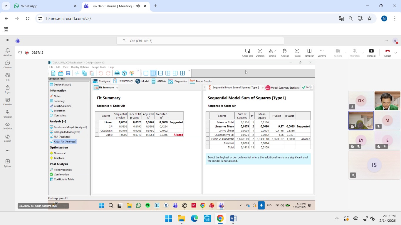 Mahasiswa yang mengikuti ujian seminar hasil kali ini adalah M. Julian SaputraJaya (NIM. 94224007) dengan judul tesis: “Response Surface Methodology (RSM) untuk Optimasi Proses Recovery Oil dari Spent Bleaching Earth.”