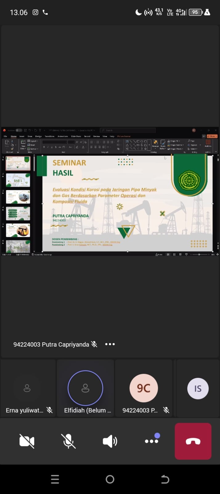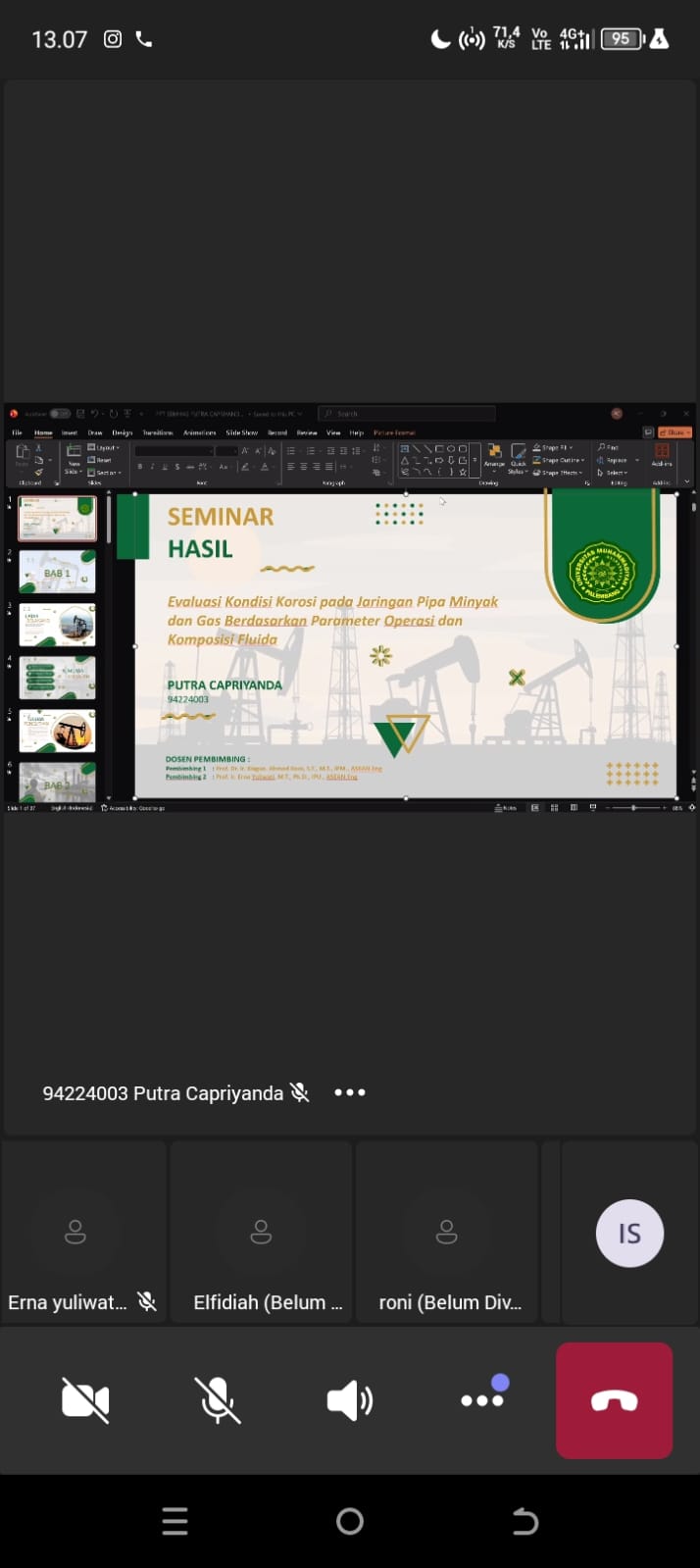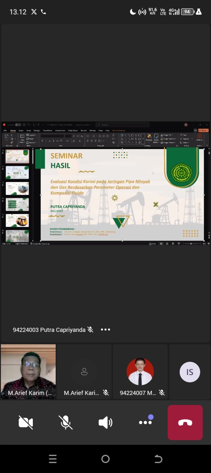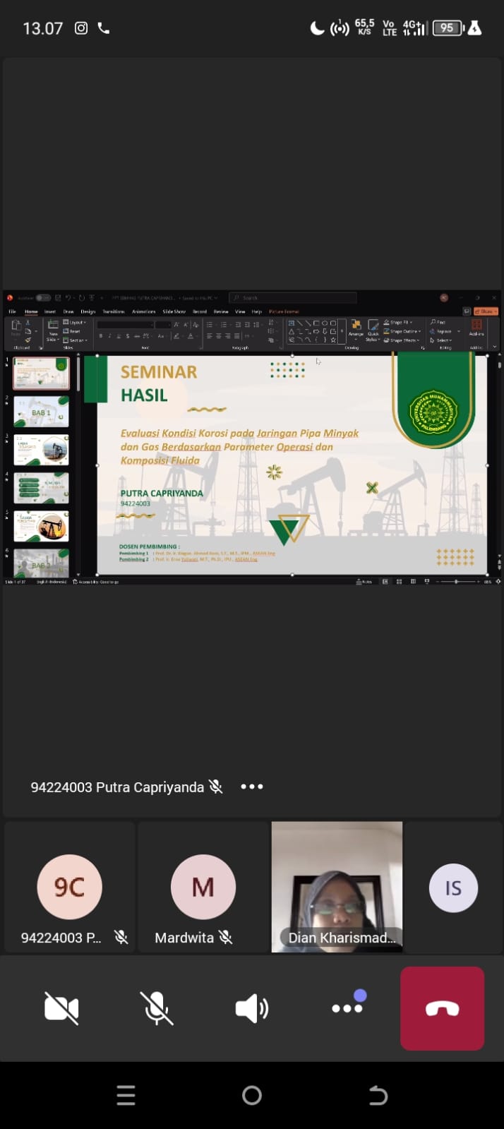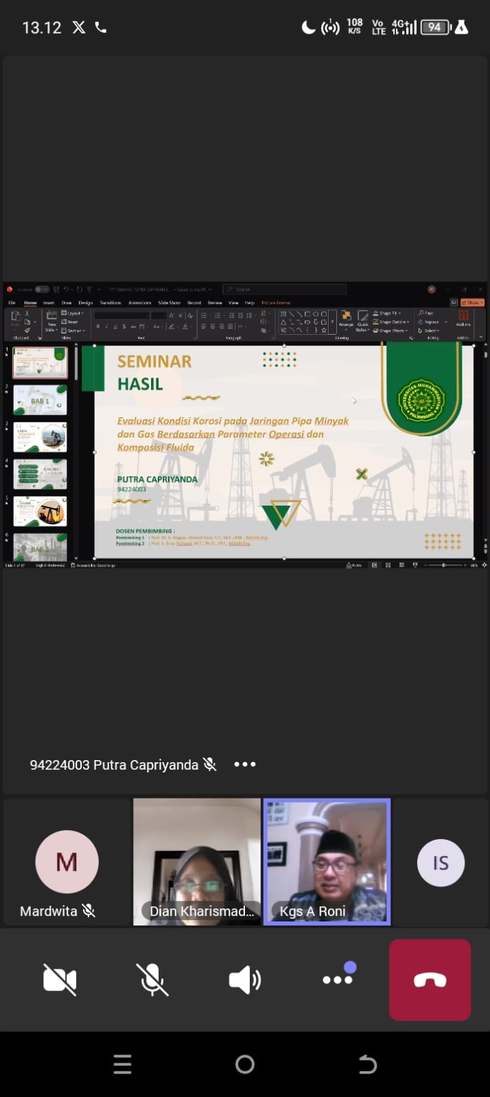 Dalam presentasinya, Putra Capriyanda memaparkan hasil penelitian yang berfokus pada analisis kondisi korosi pada jaringan pipa minyak dan gas. Penelitian ini meninjau berbagai parameter operasi serta komposisi fluida yang berpotensi mempengaruhi laju korosi pada sistem perpipaan industri migas. Kajian tersebut diharapkan dapat memberikan kontribusi ilmiah dalam upaya pengendalian korosi, peningkatan keamanan operasional, serta efisiensi pemeliharaan infrastruktur pipa di sektor energi.