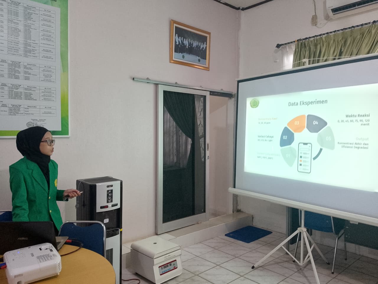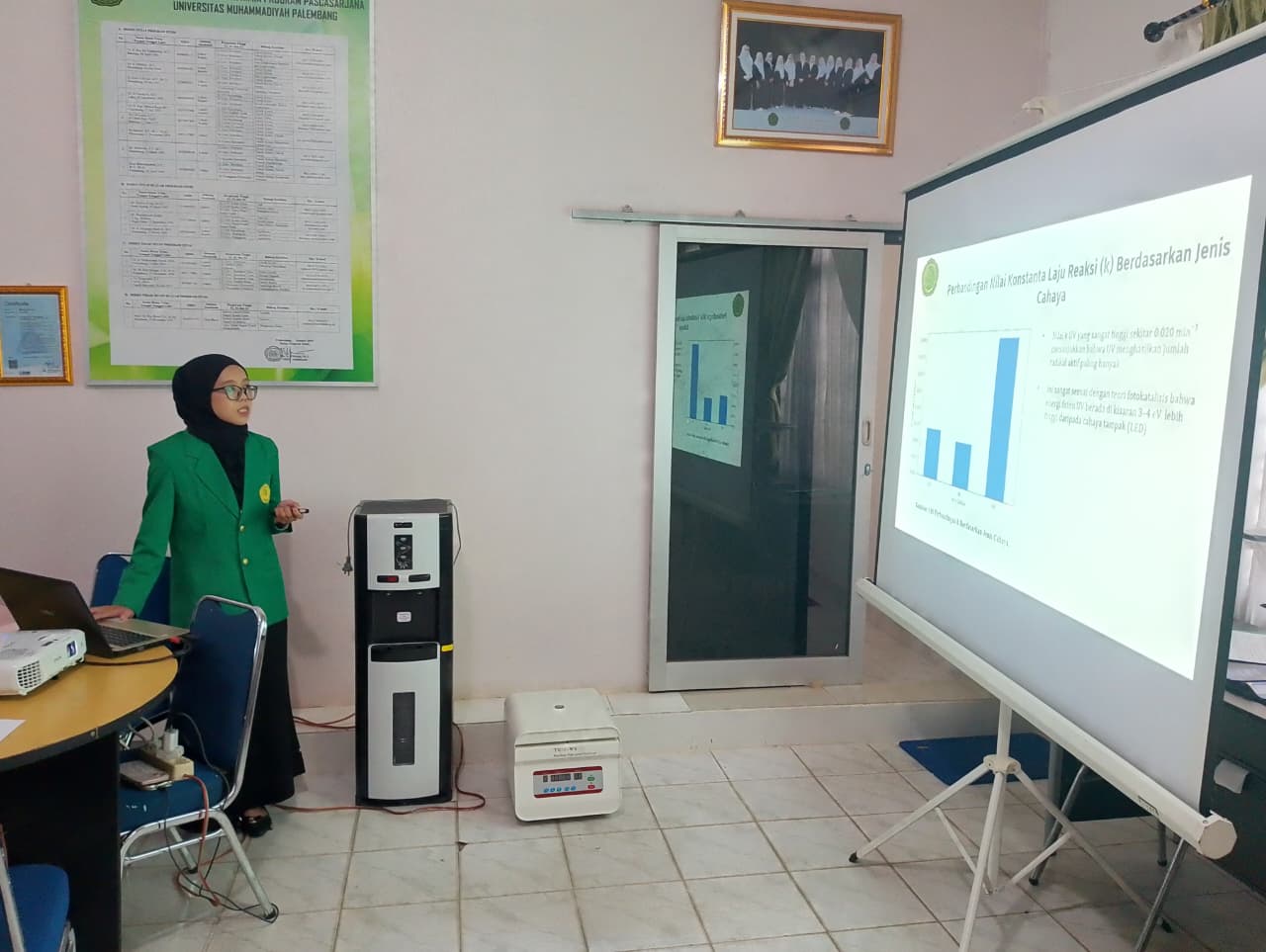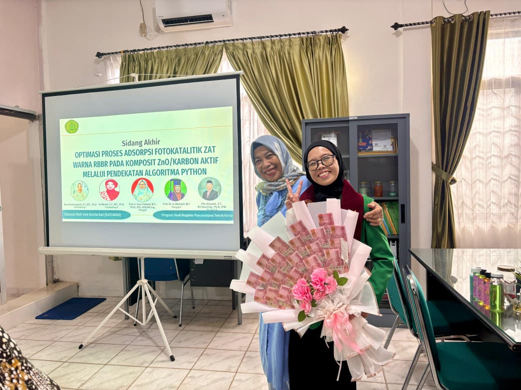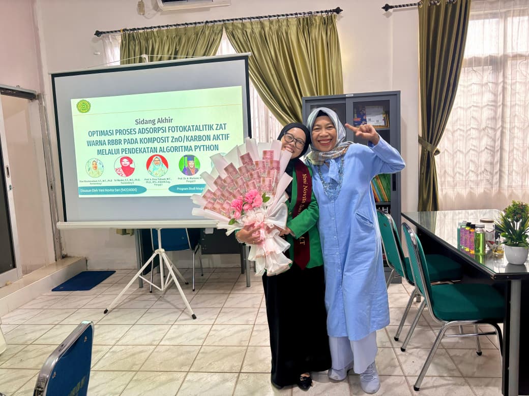 Mahasiswa yang mengikuti ujian tesis pada kesempatan tersebut adalah Yeni Novita Sari (NIM. 94224004) dengan judul penelitian “Optimasi Proses Adsorpsi Fotokatalitik Zat Warna RBBR pada Komposit ZnO/Karbon Aktif melalui Pendekatan Algoritma Python.”