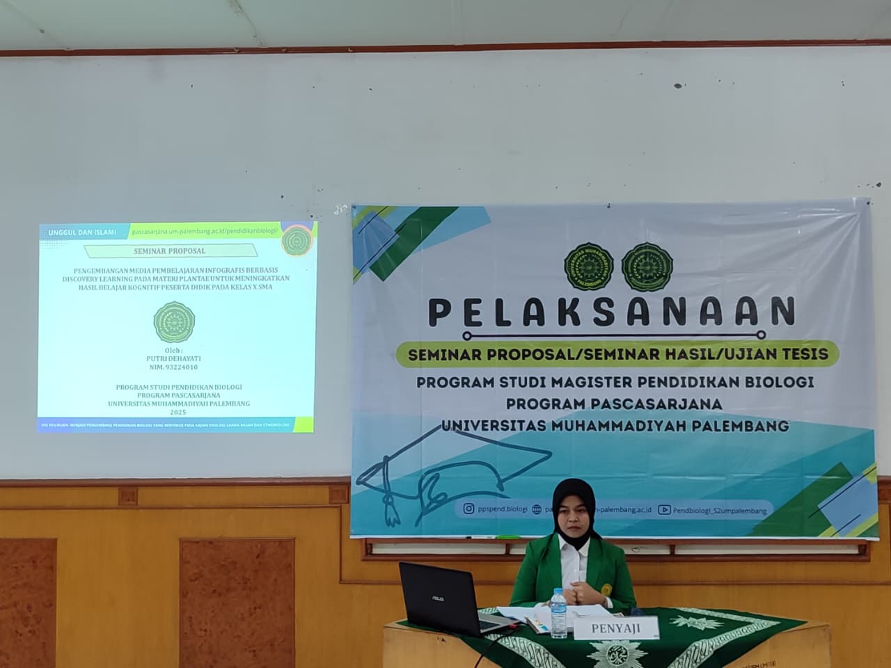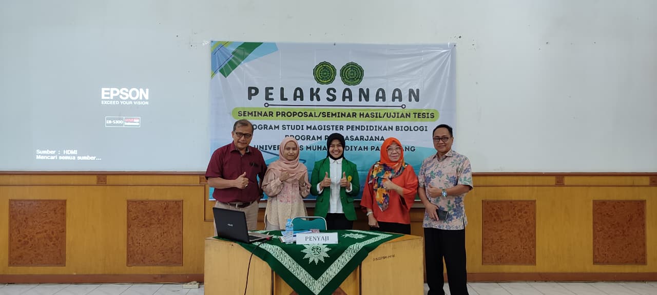Palembang, 8 Oktober 2025 – Pendidikan Biologi, Program Magister, PPs Universitas Muhammadiyah Palembang menyelenggarakan seminar proposal tesis mahasiswa atas nama Putri Dehayati (93224010). Seminar proposal mahasiswa dilaksanakan secara offline mulai pukul 08.30 – 10.00 WIB, di Ruang 2 Program Pascasarjana Lantai 2. Putri menyusun proposal tesis dengan judul “Pengembangan Media Pembelajaran Infografis Berbasis Discovery Learning pada materi Plantae untuk Meningkatkan Hasil Belajar Kognitif Peserta Didik Kelas X SMA”. Pembimbing utama proposal adalah Dr. Yetty Hastiana, M.Si., dan Dr. Astrid S.W. Sumah, M.Si. Penelaah yang turut hadir dalam kegiatan seminar proposal ini antara lain: Dr. Saleh Hidayat, M.Si., Prof. Dr. Indawan Syahri, M.Pd., dan Dr. Wulandari Saputri, M.Pd.