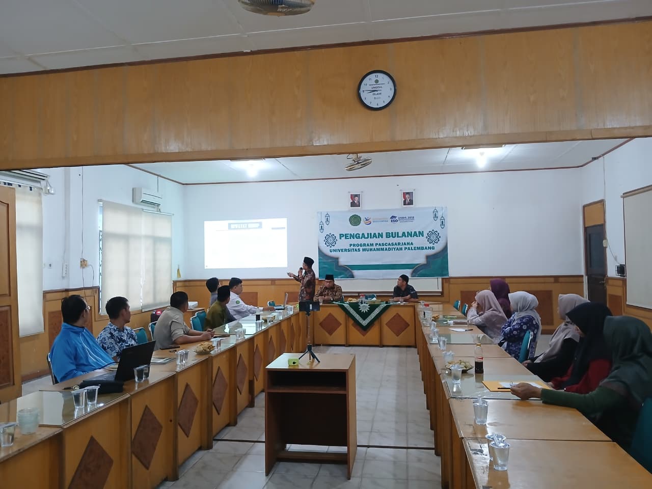 Pengajian kali ini mengangkat tema yang sangat relevan dengan kalender Hijriah, yakni “Menguatkan Amal Spirit Rajab dan Sya’ban Menuju Ramadhan”. Acara menghadirkan pemateri, Ust. Drs. Sunaryo, M.H.I., yang memberikan ulasan mendalam mengenai persiapan batin dan amaliyah menjelang bulan suci. Guna menjangkau seluruh mahasiswa yang tersebar di berbagai wilayah, pengajian dilaksanakan secara hybrid. Pimpinan, dosen dan staf hadir secara luring di ruang Pascasarjana, sementara para mahasiswa mengikuti jalannya tausiyah dengan khidmat melalui platform Zoom Meeting.
