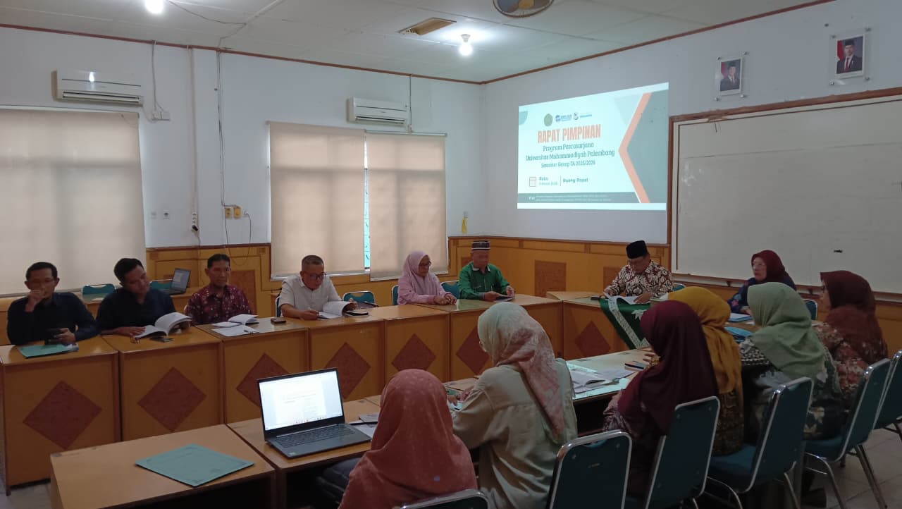 Program Pascasarjana Universitas Muhammadiyah Palembang menggelar Rapat Pimpinan (Rapim) pada Rabu, 11 Maret 2026. Bertempat di Ruang Rapat Pascasarjana, pertemuan ini fokus membahas persiapan teknis dan evaluasi menyambut Tahun Akademik Semester Genap 2025/2026. Rapat dipimpin langsung oleh Direktur Program Pascasarjana dan didampingi oleh Sekretaris Direktur. Agenda ini merupakan langkah untuk memastikan seluruh layanan akademik dan kualitas pembelajaran berjalan optimal sesuai dengan standar mutu universitas.